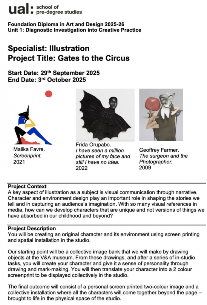 On the week of the 29th of September, communication specialist students at UAL FAD undergo the illustration brief “gates to the circus” – the brief includes an embedded screenprinting workshop (2 colour paper stencils)